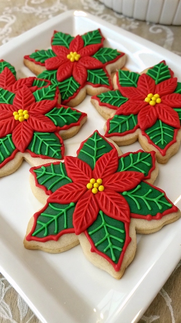 Poinsettias are a beautiful symbol of the holiday season. Create poinsettia-shaped cookies using a flower cookie cutter and decorate with red and green icing. Use a yellow candy or icing for the center of the flower. These cookies not only look stunning but also add a touch of elegance to your holiday cookie platter.