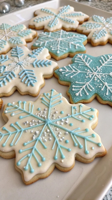 Snowflakes are a quintessential symbol of winter and Christmas. To create classic iced snowflake cookies, start with a basic sugar cookie recipe. Once baked and cooled, use royal icing to pipe intricate snowflake designs. You can use a light blue or white icing for a frosty effect, and sprinkle edible glitter for added sparkle.