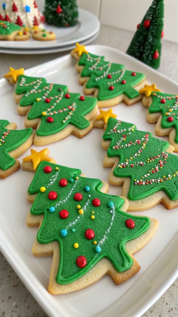 Transform your sugar cookies into festive Christmas trees! Use a tree-shaped cookie cutter and decorate with green icing. Add colorful sprinkles or mini candies to represent ornaments. For a finishing touch, use a star-shaped candy or icing to top off each tree, creating a delightful holiday treat.