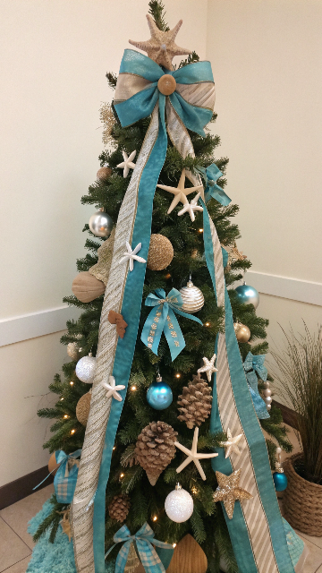 Enhance the coastal theme with ornaments like starfish, seashells, and beach-inspired decorations. You can also add faux coral or driftwood for a natural touch. A starfish or seashell tree topper will complete this beachy look.