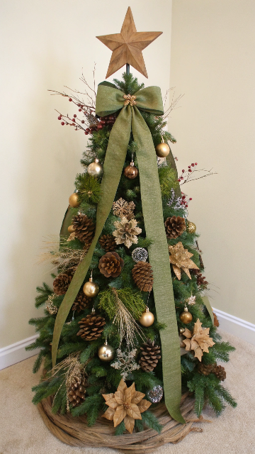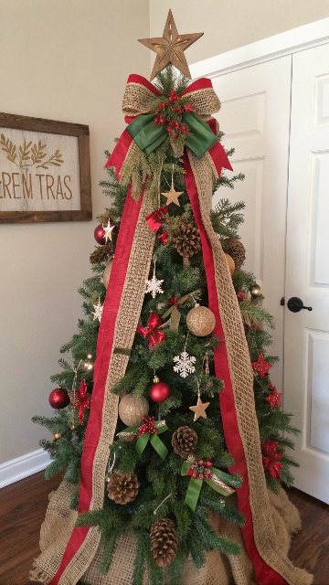 Incorporate natural elements such as pinecones, dried flowers, and wooden ornaments to enhance the theme. You can also add sprigs of evergreen or holly for a fresh touch. A simple burlap bow or a wooden star tree topper will complete this nature-inspired design.