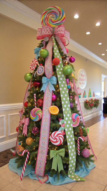 Create a whimsical Candy Land theme by using ribbons in bright pastel colors. Start with a green tree and wrap it with wide pastel ribbons, allowing them to cascade down. Use smaller ribbons in candy-inspired patterns to create bows and accents throughout the tree.
