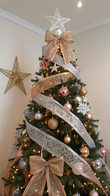 Incorporate metallic ornaments, such as shiny baubles and glittery stars, to enhance the glamorous theme. You can also add crystal or glass accents for extra sparkle. A stunning metallic star or a glamorous bow at the top will complete this luxurious look.