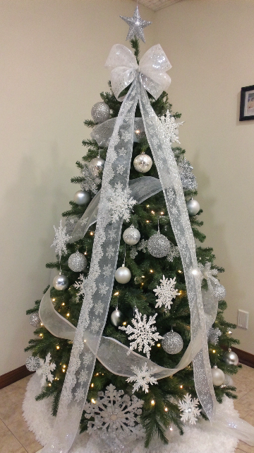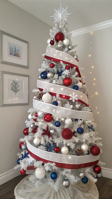 Transform your tree into a winter wonderland by using white and silver ribbons. Start with a white tree or a green tree flocked with snow. Use wide silver ribbons to create a cascading effect, interspersed with delicate white lace ribbons for added texture. This combination will give your tree a frosty, ethereal look.