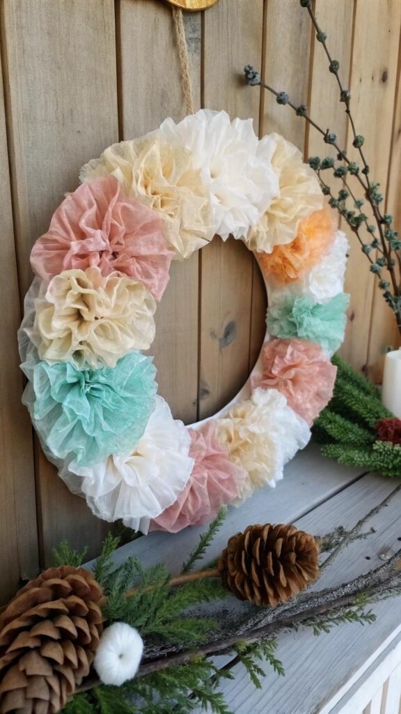 A coffee filter wreath is a creative and budget-friendly option for rustic farmhouse decor. This wreath can be made using simple materials and offers a soft, textured look that is both charming and unique. It’s perfect for those who enjoy DIY projects and want to add a personal touch to their home.
