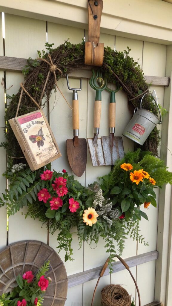 For gardening enthusiasts, a rustic garden tool wreath is a creative way to showcase your passion. This wreath can incorporate small garden tools like trowels, watering cans, and seed packets, surrounded by flowers and greenery. It’s perfect for those who love to bring the beauty of their garden indoors.