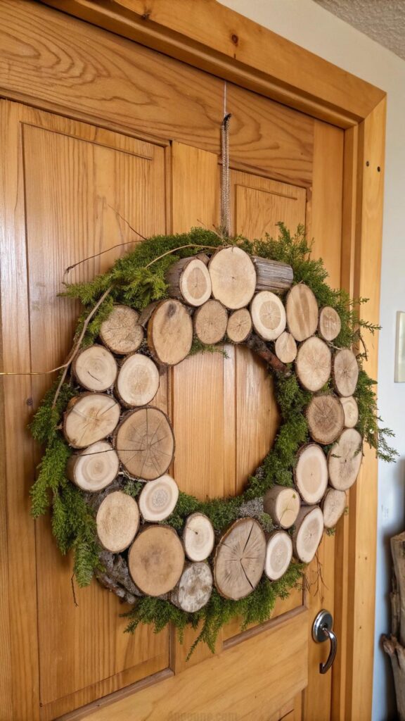 A rustic wood slice wreath adds a unique and natural touch to your decor. Using slices of wood, you can create a wreath that showcases the beauty of natural materials. This wreath is perfect for those who love a more organic and earthy aesthetic.