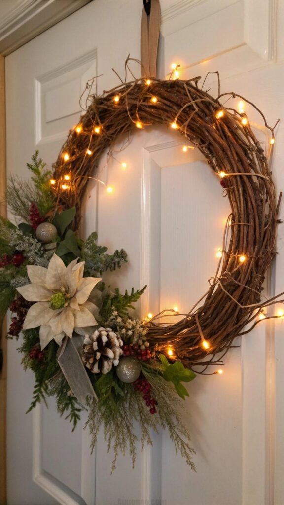 Add a magical touch to your decor with a whimsical fairy lights wreath. This wreath can be adorned with fairy lights, creating a warm and inviting glow. It’s perfect for those who love to entertain and want to create a cozy atmosphere in their home.