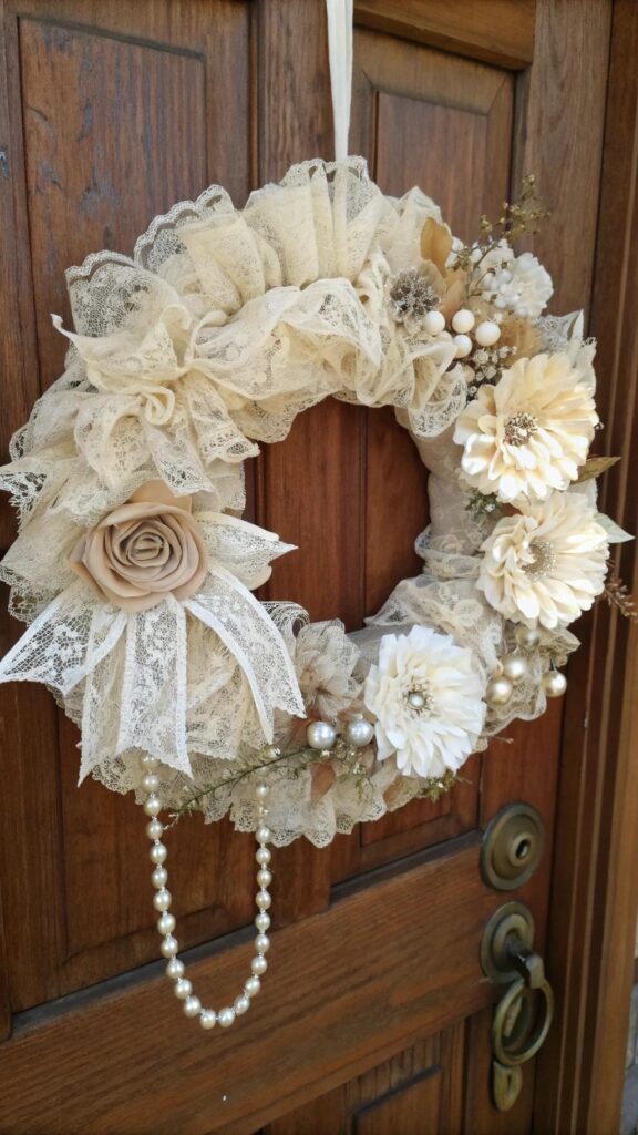 To create a vintage lace wreath, start with a foam base and wrap it in lace or fabric. You can layer different types of lace for added texture and interest. Adding embellishments like flowers or pearls can enhance the vintage feel. This wreath is perfect for weddings or special occasions but can also be enjoyed as everyday decor.