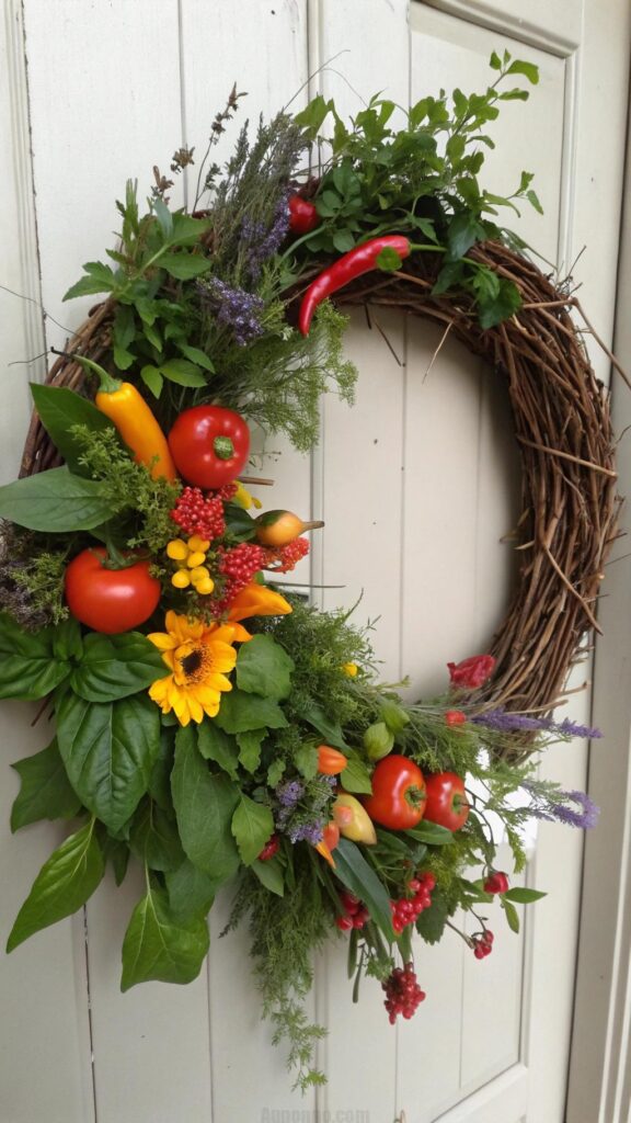 Celebrate the farm-to-table movement with a farm fresh wreath. This wreath can feature elements like faux vegetables, herbs, and flowers, capturing the essence of a bountiful harvest. It’s perfect for those who love gardening and want to bring a touch of the farm into their home.