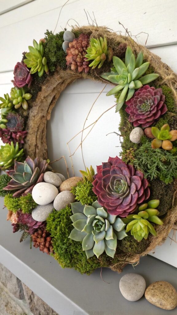 To create a succulent wreath, start with a foam base and attach the succulents using hot glue. You can mix different types of succulents for variety and add elements like moss or stones for a natural look. This wreath is perfect for year-round display and can be a great conversation starter.