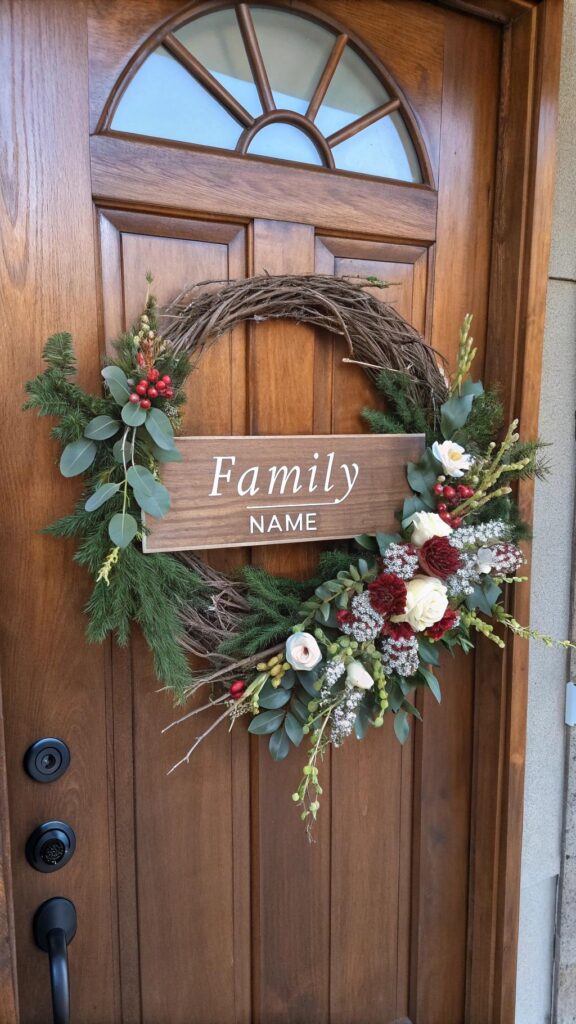 Incorporate a personal touch into your decor with a farmhouse sign wreath. This wreath can feature a wooden sign with a meaningful quote or your family name, surrounded by seasonal decorations. It’s a great way to showcase your style and make a statement.