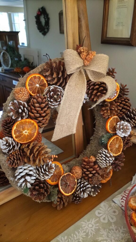 To create a pinecone wreath, start with a sturdy base, such as a foam or wire frame. Attach the pinecones using hot glue, layering them for a full look. You can also add elements like burlap ribbon or dried orange slices for a seasonal touch. This wreath is perfect for adding a cozy feel to your home during the colder months.
