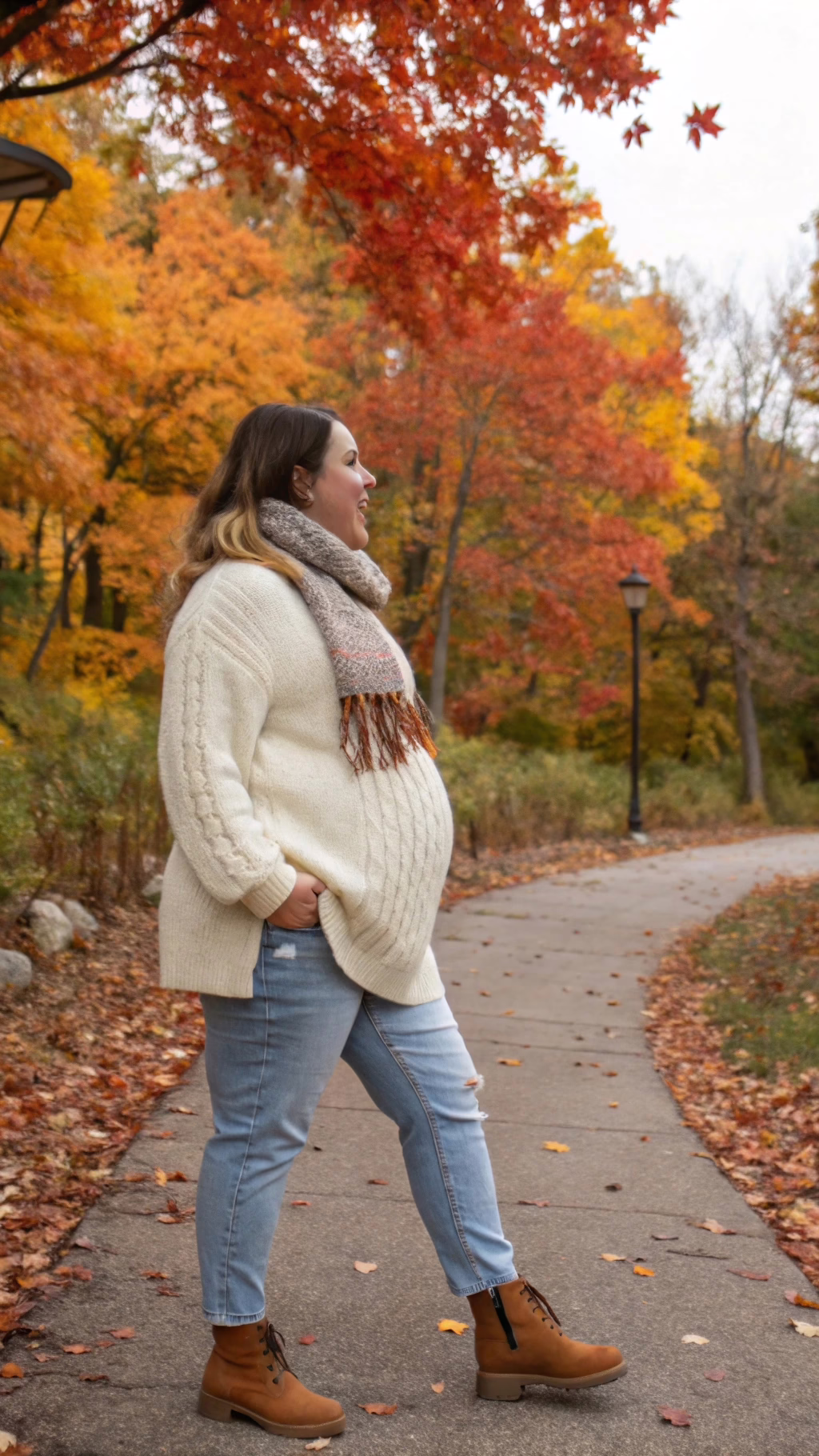 Boyfriend jeans offer a relaxed fit, ideal for big belly outfits plus size. Pair them with an oversized sweater for a cozy yet stylish look. The loose top balances the wider leg of the jeans.