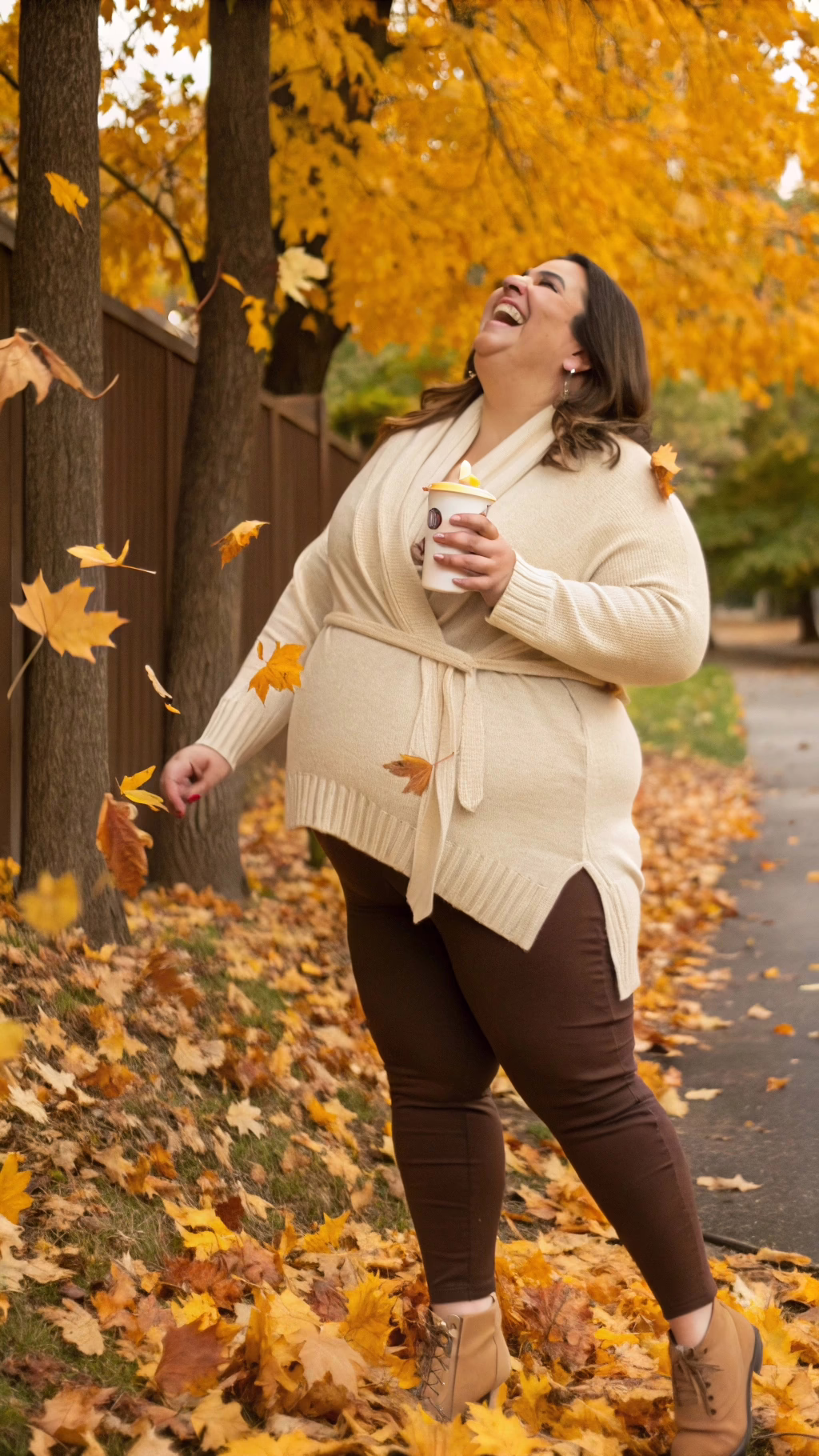 Side-tie wrap sweaters offer adjustable comfort for big belly outfits plus size. The tie closure allows customizable fit throughout the day. The draped front creates elegant vertical lines.