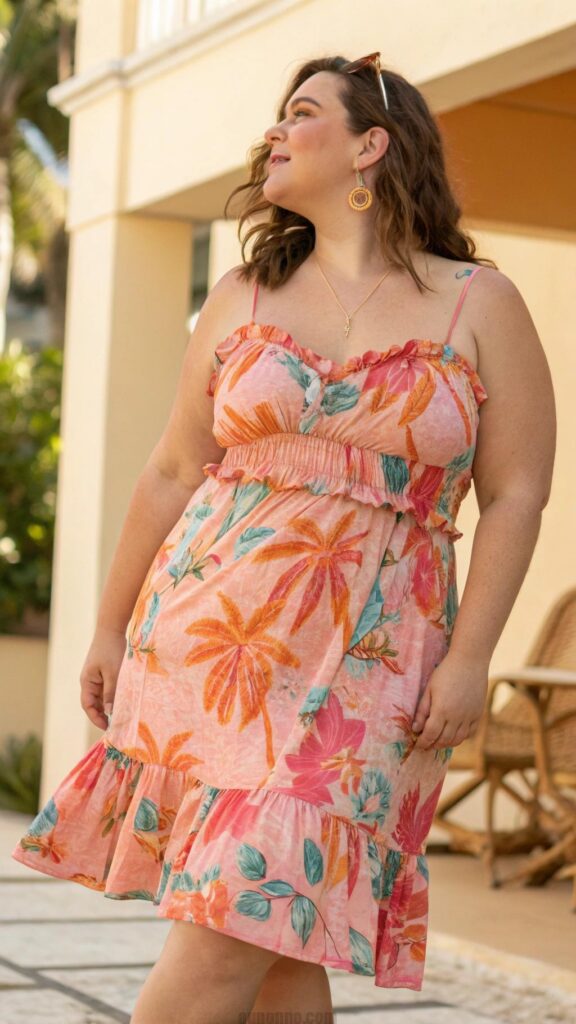 Empire waist dresses are perfect for big belly outfits plus size because the seam sits just below the bust. This design flows over the stomach area without clinging. The loose fit keeps you comfortable while looking elegant.