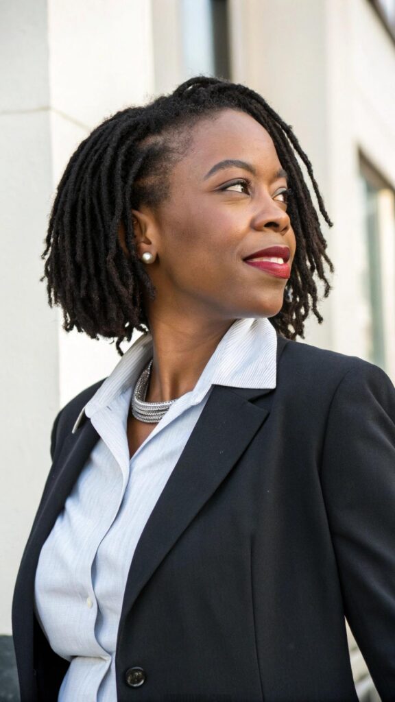 The short bob style works exceptionally well for women who want to experience locs without the commitment of longer lengths. Maintenance is simpler with shorter locs, requiring less drying time and fewer products for upkeep. This length also allows for easier sleeping and exercising without the weight and bulk of longer styles.