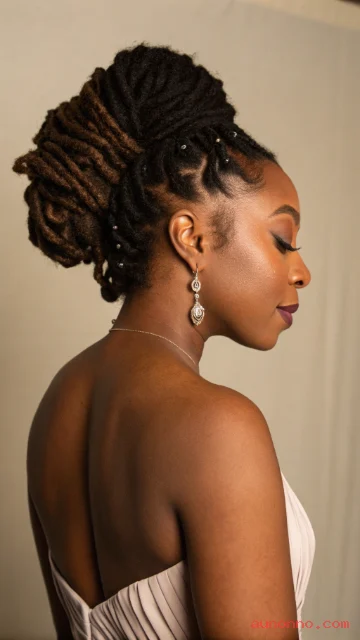 This style works well with long locs or with added loc extensions. Keep the crown smooth with careful pin placement.