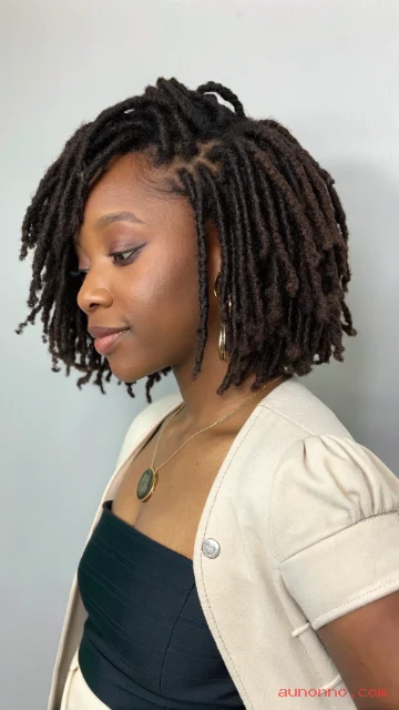 A short loc bob frames the face and keeps styling fast. The ends sit around the jaw or chin for a clean silhouette.
