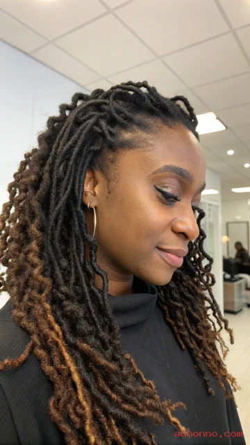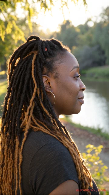Subtle highlights add dimension without changing your whole look. Honey brown or auburn tones can make locs glow in sunlight.