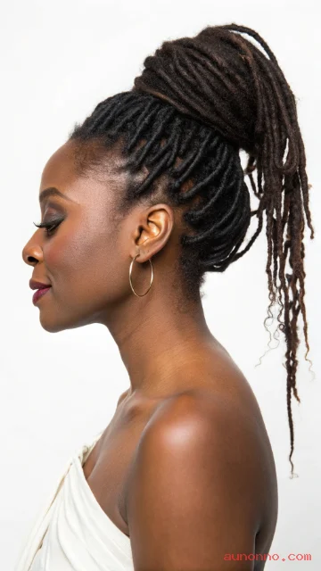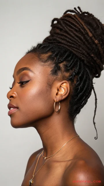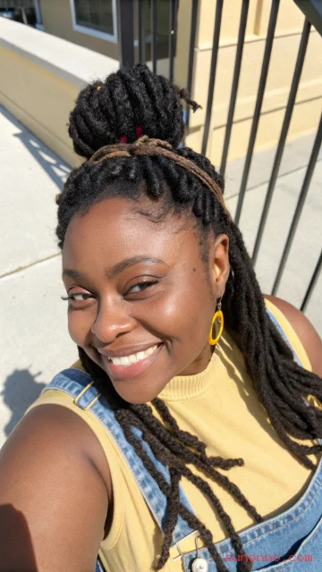 A top knot bun looks sleek and keeps hair off your neck. Locs create a full bun with strong structure.