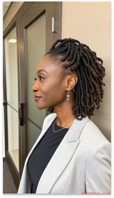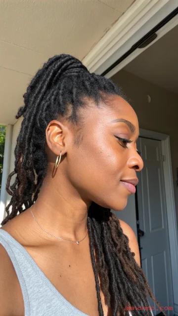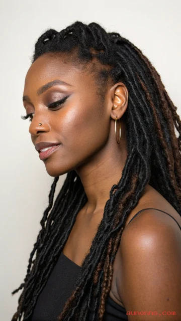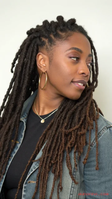 This style flatters many face shapes and works at most loc lengths. Add a simple hair cuff or gold string for a small accent.