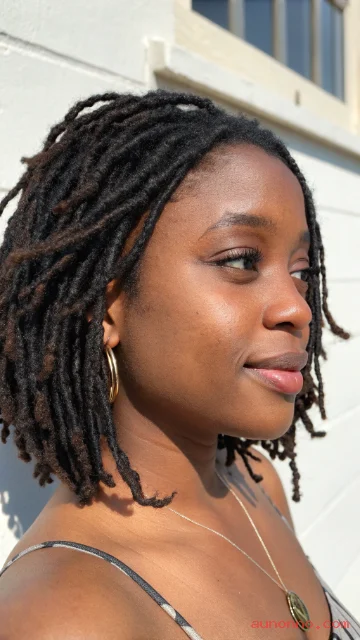 Shoulder-length locs give you daily styling options without extra weight. The length works for ponytails, half-up styles, and simple wraps.