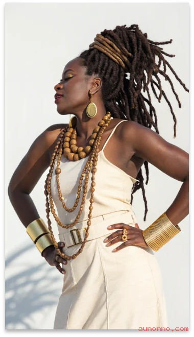 Choose lightweight accessories that do not snag hair. Mix gold cuffs with wooden beads for a balanced look.