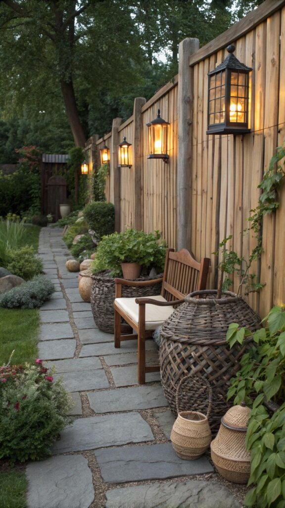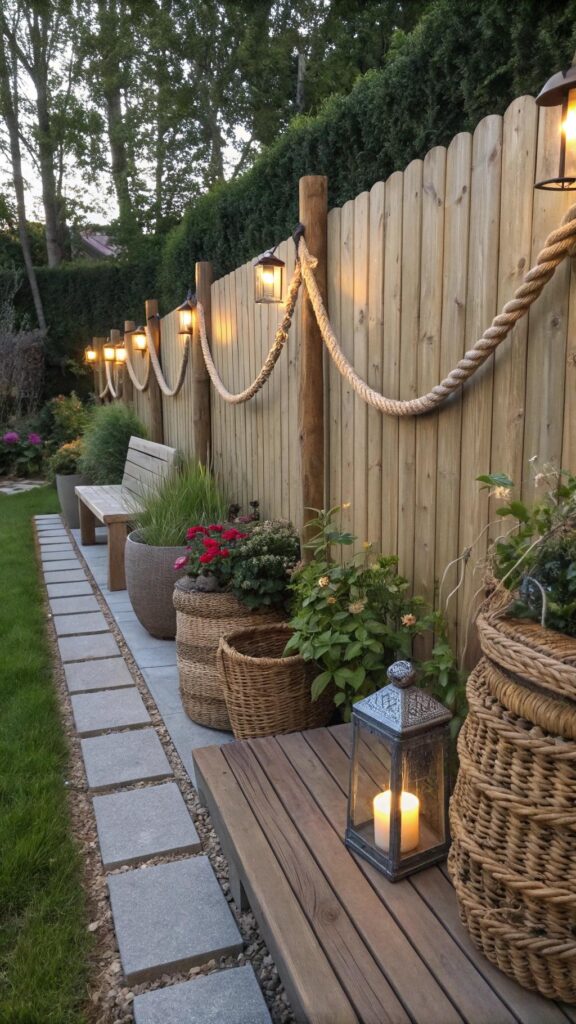 This type of fence is perfect for adding a nautical or rustic touch to your garden. Pair it with lanterns, woven baskets, and potted plants for a cozy, inviting atmosphere. The result is a fence that’s both functional and decorative.