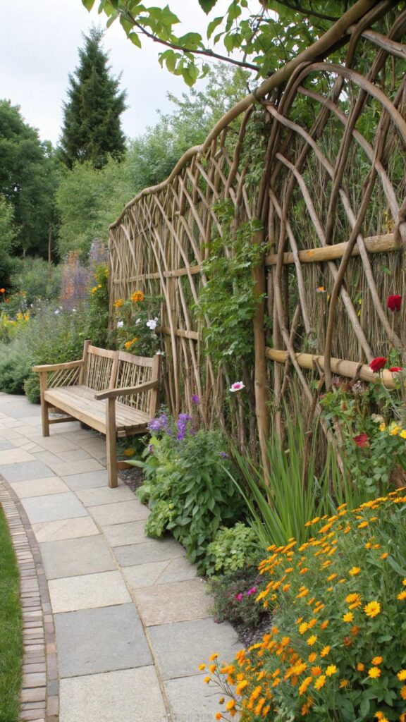 This type of fence is perfect for adding a touch of whimsy and nature to your garden. Pair it with wildflowers, herbs, and climbing plants for a cohesive look. The living willow fence will blend seamlessly with the surrounding greenery.
