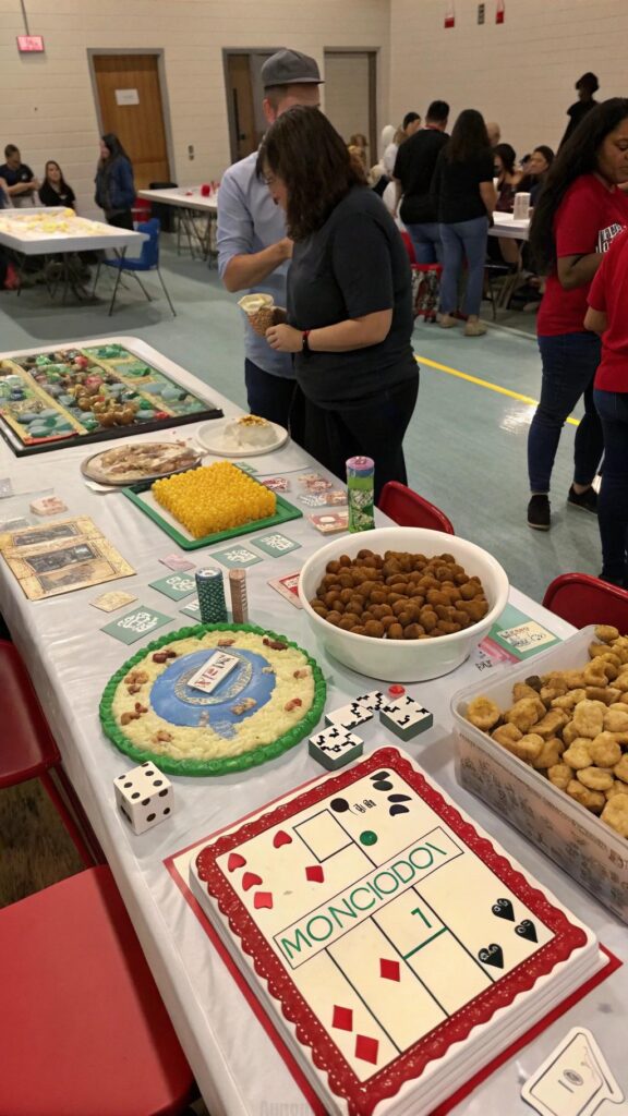 Serve stadium-style snacks like hot dogs, nachos, and popcorn. You can even create a concession stand for an authentic touch. Don’t forget a trophy-shaped cake to honor the graduate’s achievements.