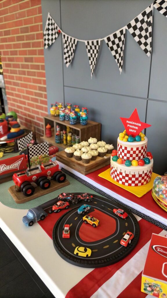 Serve snacks like “pit stop” hot dogs and “tire” donuts. Add a custom cake shaped like a car or a finish line. This theme is perfect for a high-energy and exciting celebration.