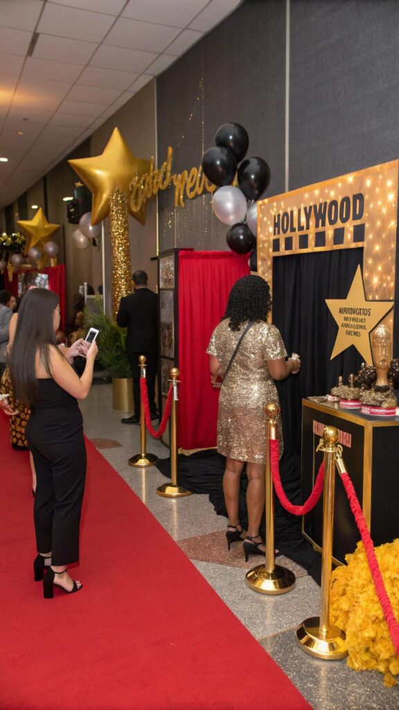 Throw a Hollywood glam party to make your graduate feel like a star. Set up a red carpet entrance with a photo booth and props like sunglasses and feather boas. Use gold and black decorations for a luxurious touch.
