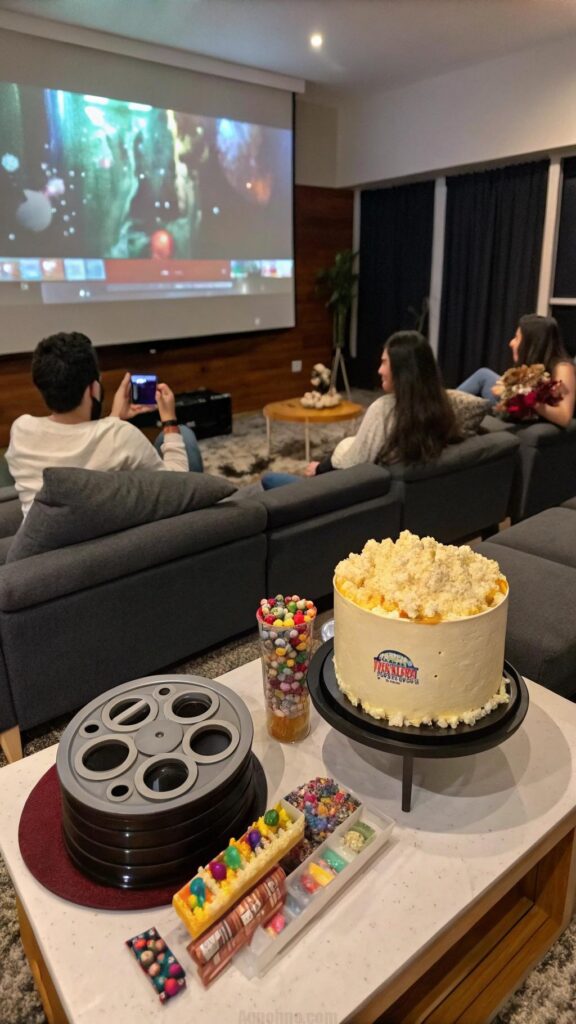 Serve movie snacks like popcorn, candy, and nachos. Add a custom cake shaped like a film reel or a clapboard. This theme is perfect for a relaxed and enjoyable celebration.