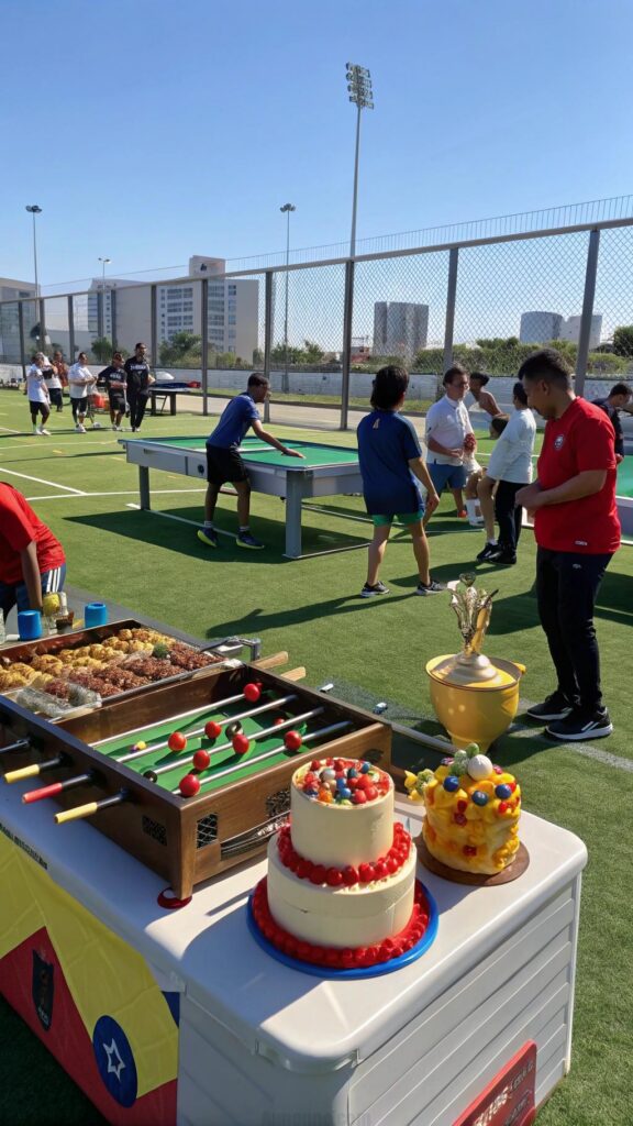 Serve sports-friendly foods like hot dogs, burgers, and energy drinks. Add a custom cake shaped like a trophy. This theme is perfect for a high-energy and fun celebration.