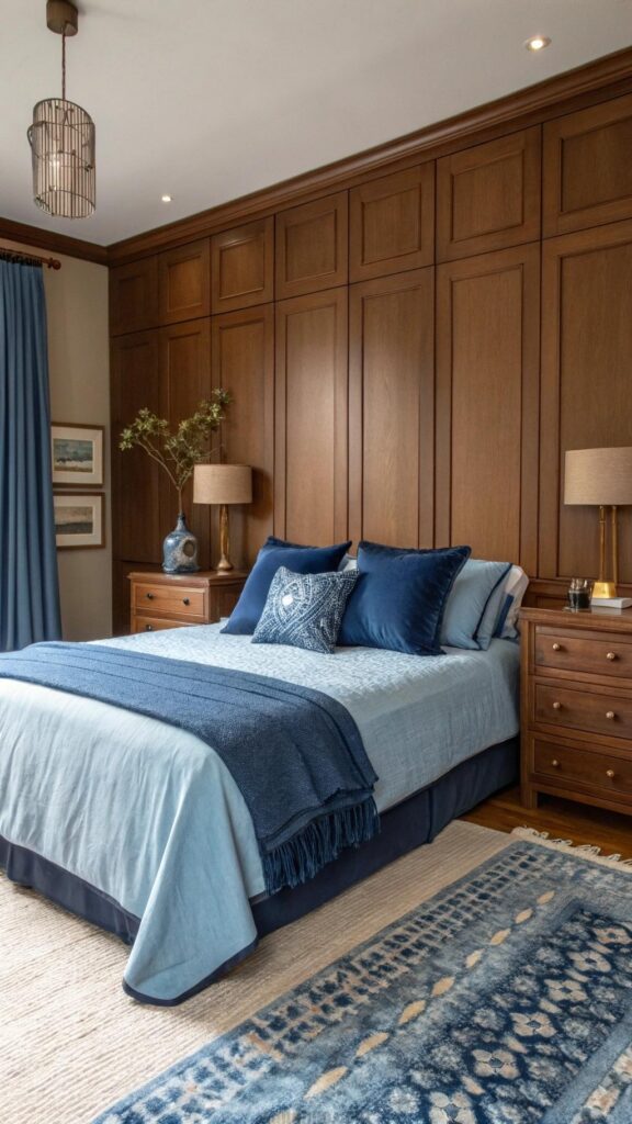 Combine brown with shades of blue for a serene and calming bedroom. Navy blue or dusty blue complement brown beautifully. This pairing creates a sophisticated and tranquil atmosphere.