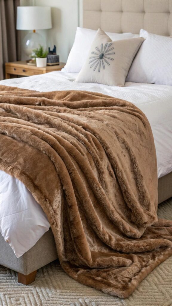 Choose a brown faux fur throw that complements your existing decor. The texture adds visual interest and warmth. It provides a tactile and comforting element.