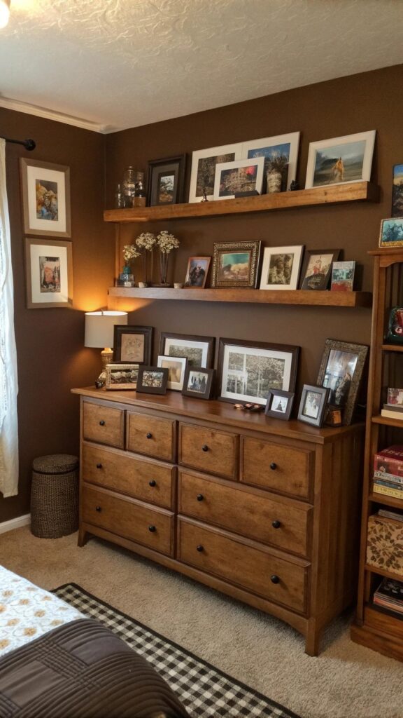 Personal touches make your brown bedroom uniquely yours. Display cherished photographs or travel souvenirs. Incorporate items that reflect your hobbies and interests.
