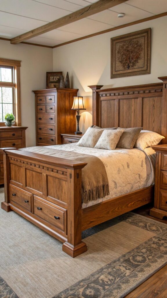 Ensure furniture pieces are proportionate to the room size. A large wooden bed frame can be a stunning focal point. Complement wooden pieces with soft textiles for comfort.