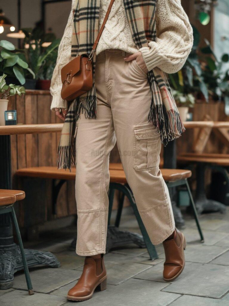 Choose cargo pants in a soft fabric and neutral tone like beige or olive. Add a chunky knit sweater in a complementary color for a cozy feel. You’ll look effortlessly put together.