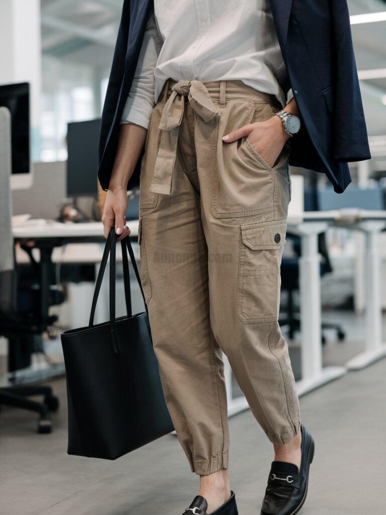 Choose cargo pants in a tailored fit and neutral color like khaki or gray. Add loafers or heels to complete the office-ready ensemble. You’ll look stylish while staying comfortable at work.