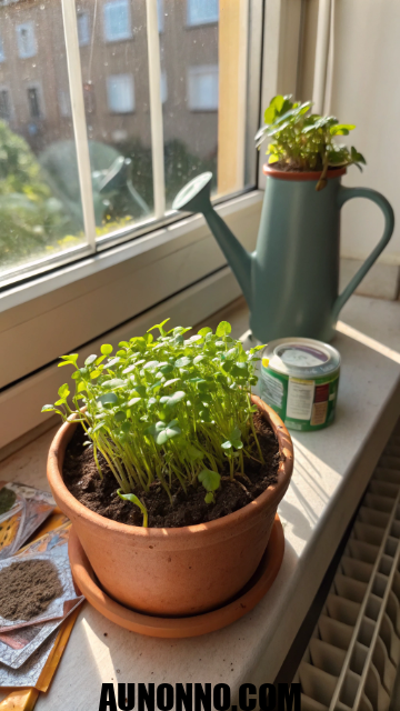 Select easy-grow varieties. Add soil and tools. Place near windows for light.