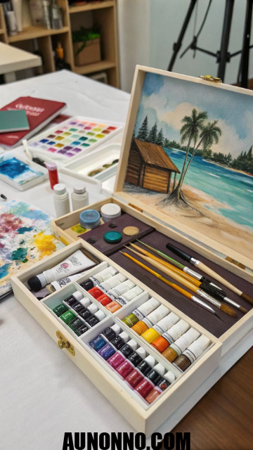 Supplies include paints and brushes. Canvases hold creations. This gift inspires artists.