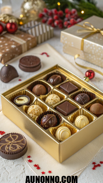 Boxes hold assorted sweets. Flavors include nuts or caramel. This gift satisfies cravings.
