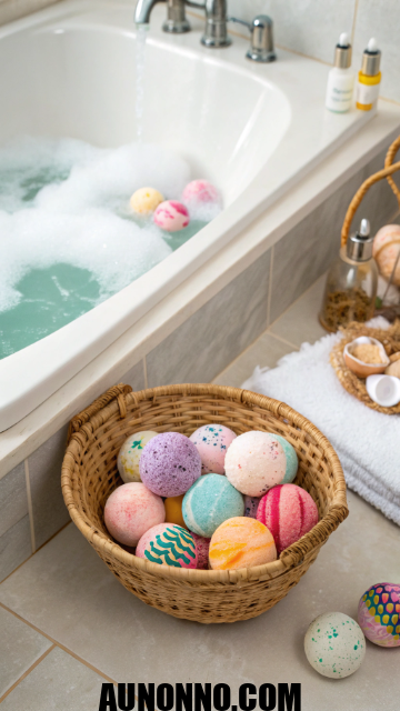 Bombs fizz in tubs for bubbles. Scents relax muscles. This gift pampers self-care.