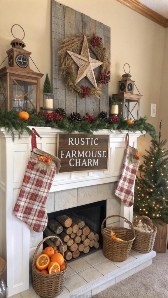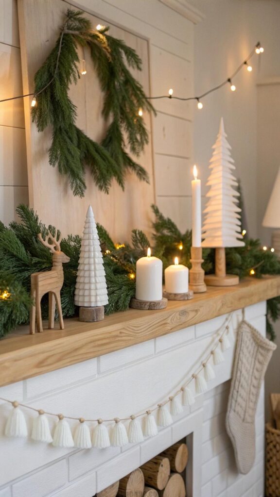 Add chunky knit stockings and simple greenery like eucalyptus or cedar. This creates an inviting and relaxed atmosphere. The rustic charm makes your home feel welcoming.