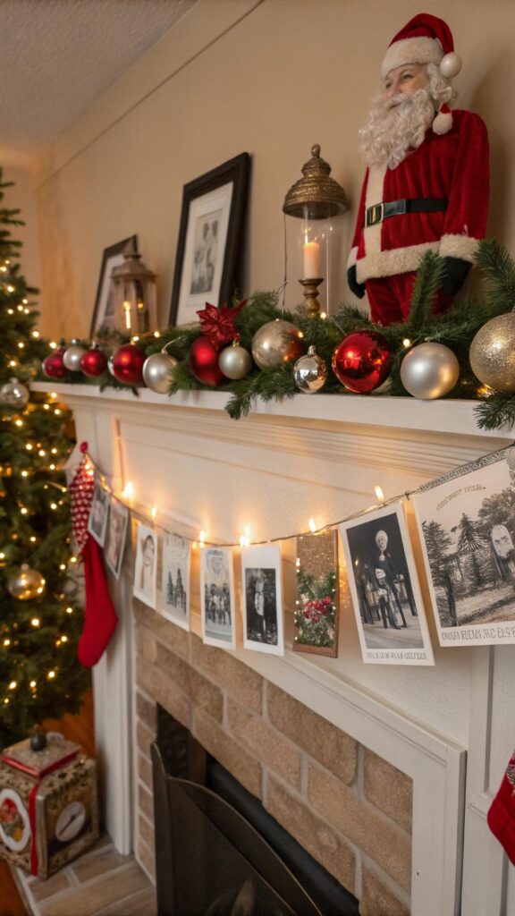 Consider adding small, handwritten notes or holiday cards from loved ones. This creates a heartwarming and sentimental display. The personalized photo theme makes your mantle a cherished memory lane.