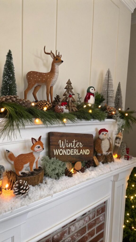 Consider adding a small, rustic sign that says “Winter Wonderland” or “Forest Friends.” This enhances the narrative of the display. The woodland animal theme is endearing and magical.