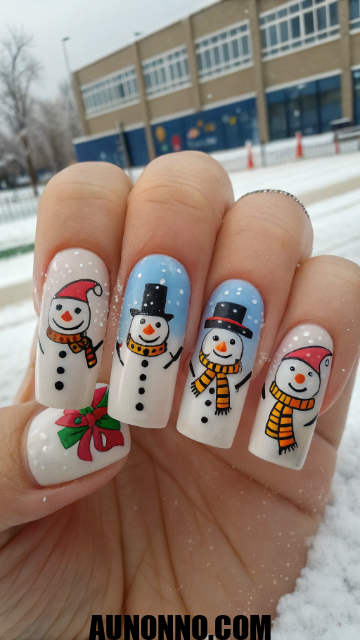Snowmen offer round cute figures. You stack white circles with carrot noses. Scarves add color.