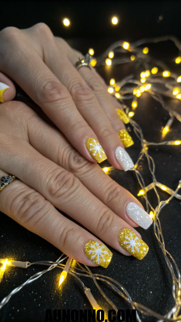 Mix with snow effects. The design feels fresh. Base coat prevents chipping.